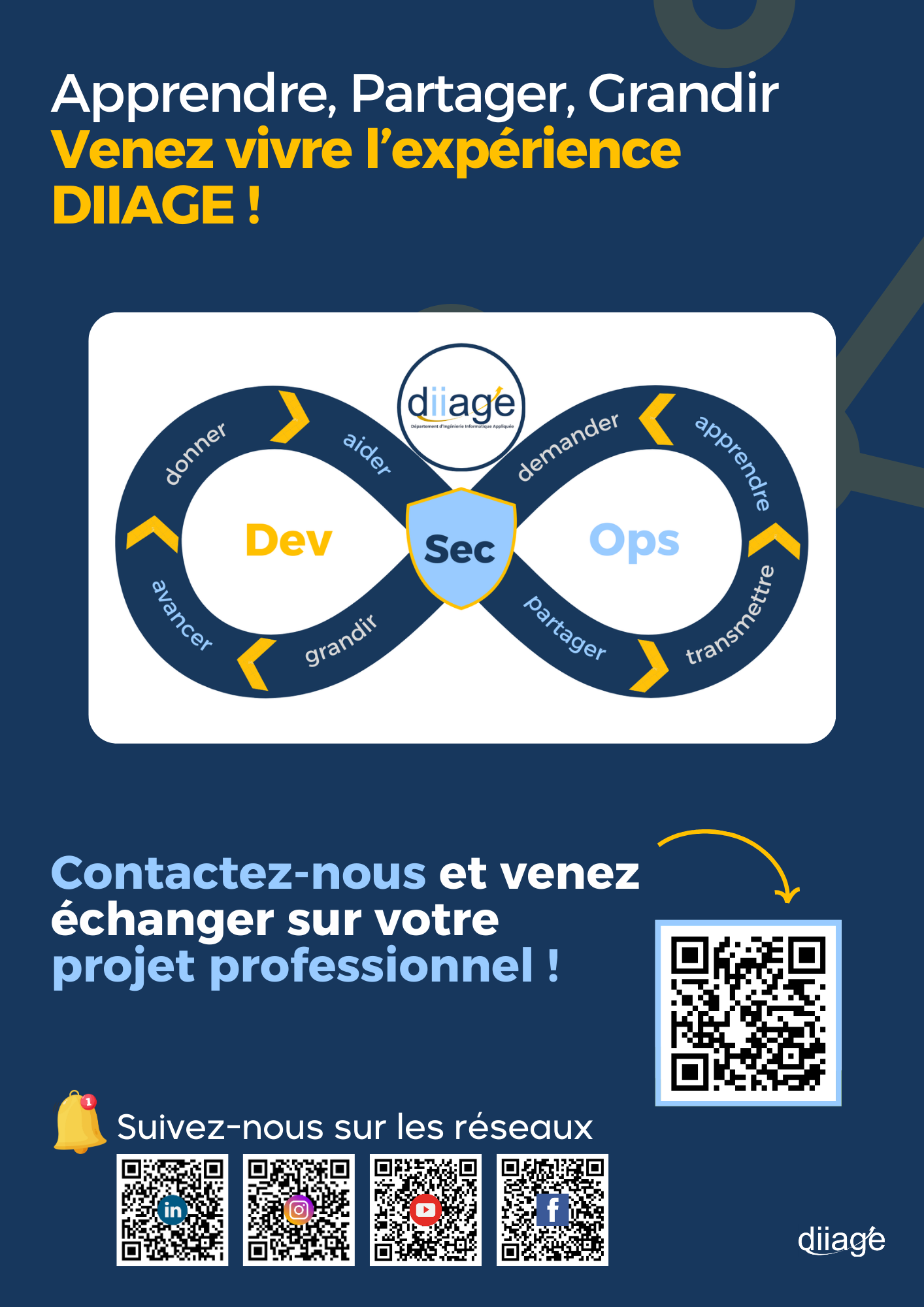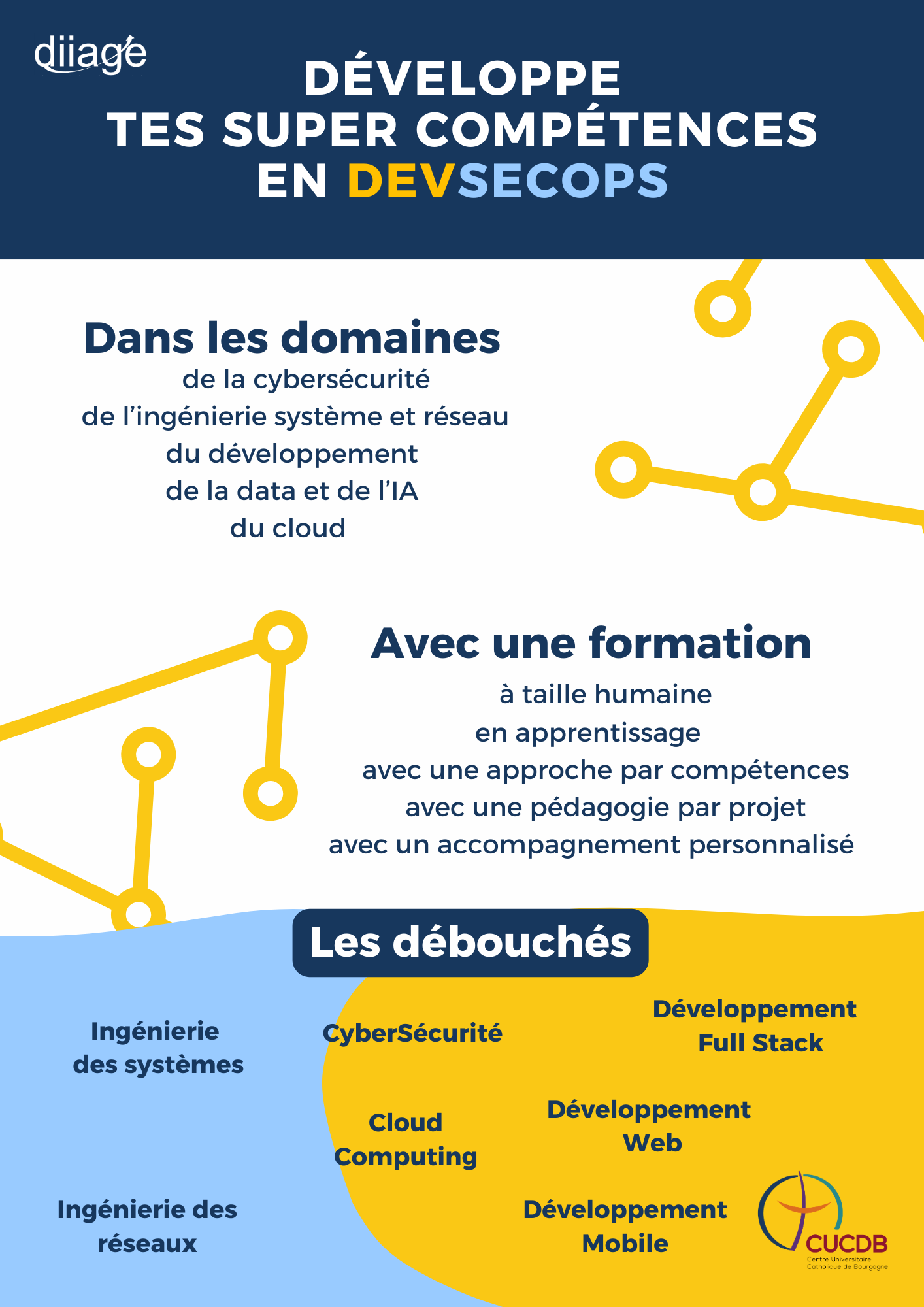 Le DIIAGE propose un cycle d’expertise en DevSecOps, structuré autour de trois diplômes reconnus par l’État :